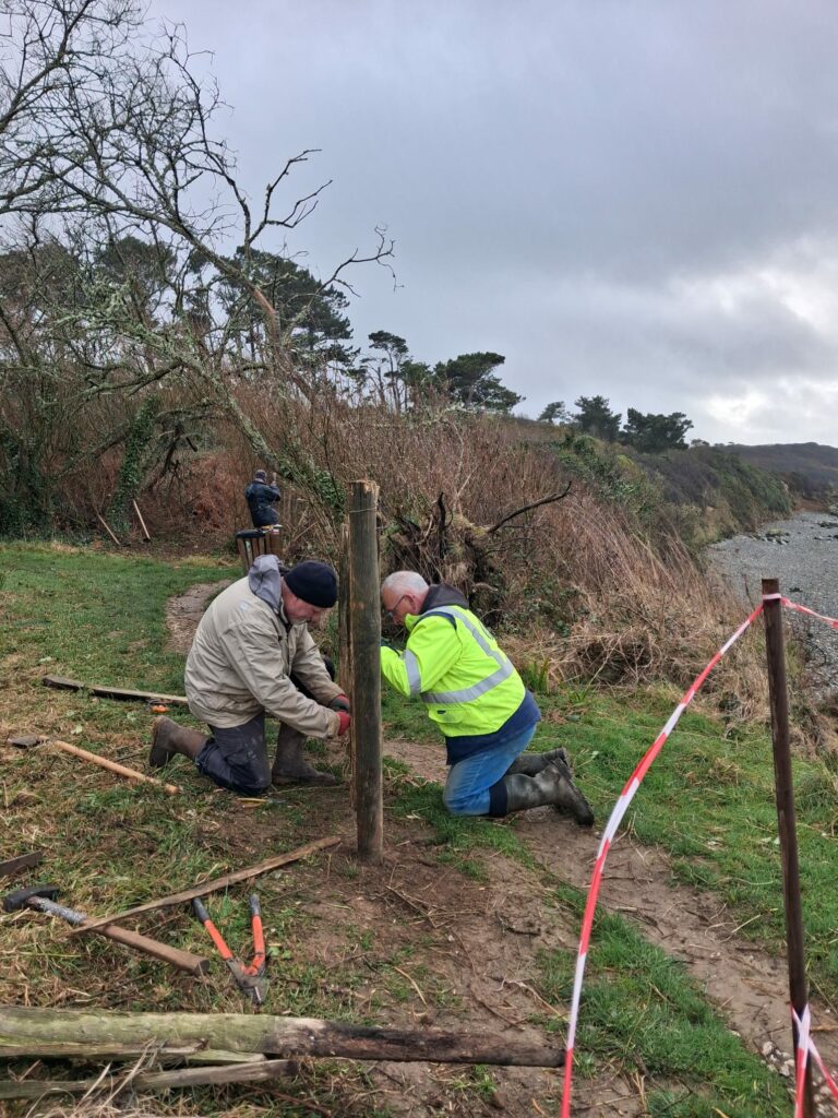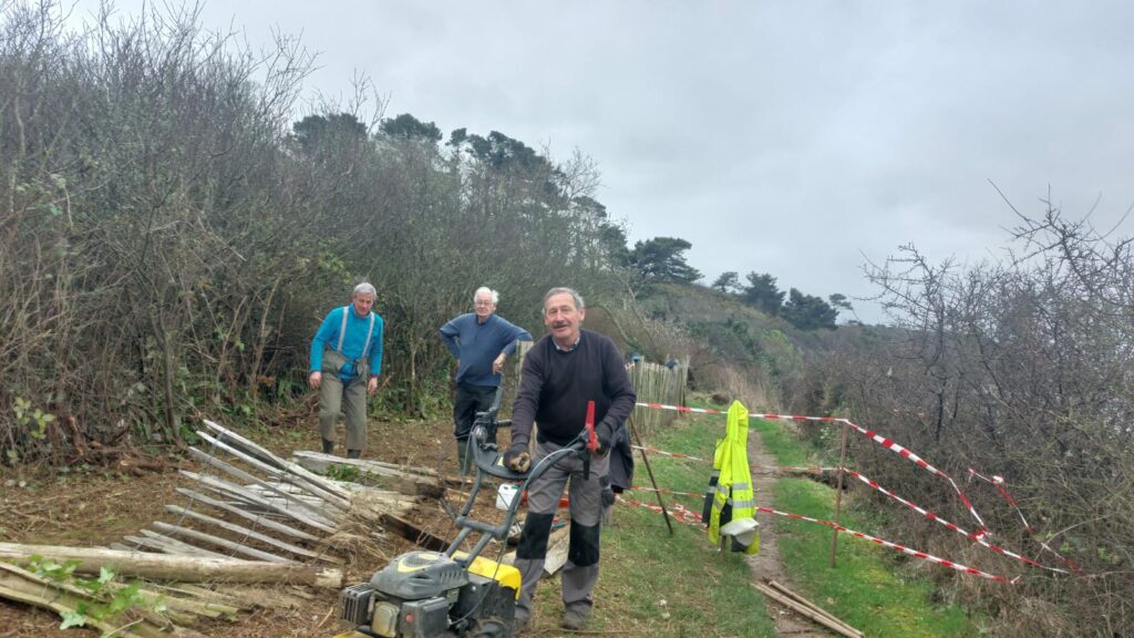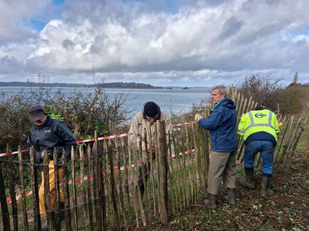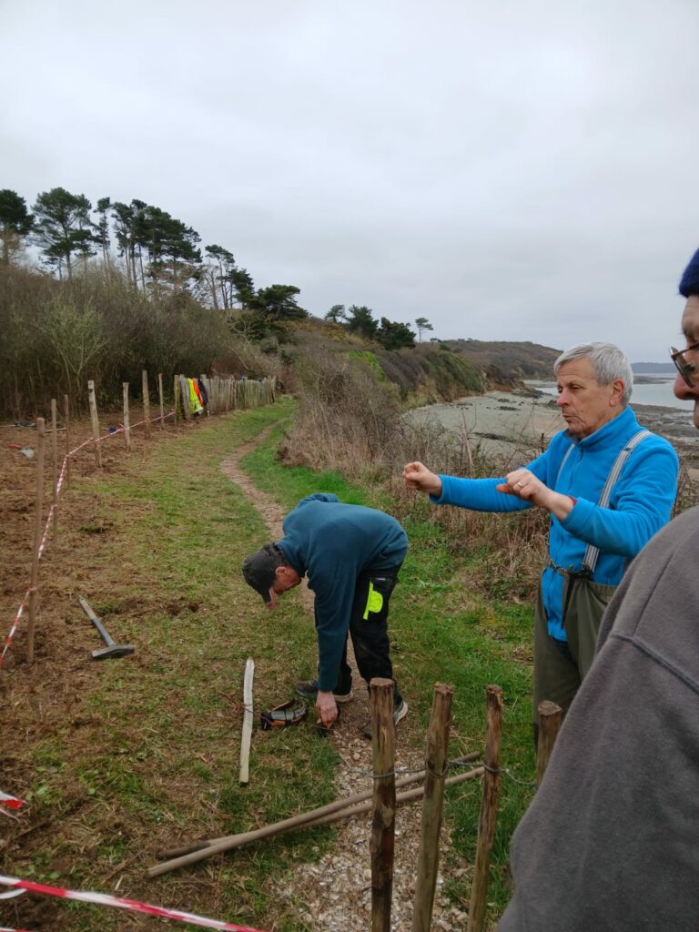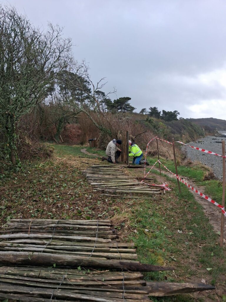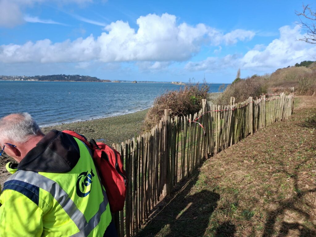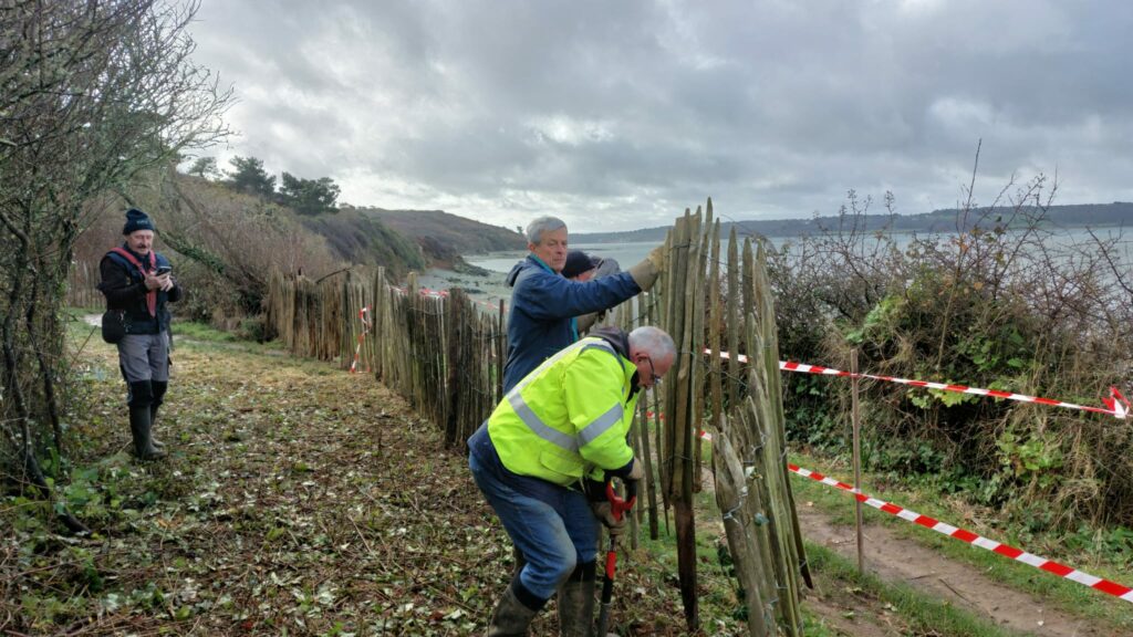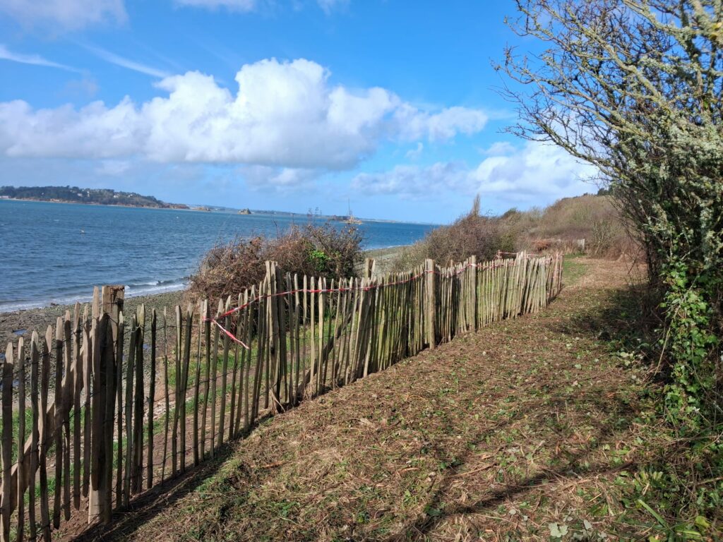 Entre Trodibon et Kerarmel, le trait de côte s’est érodé, entraînant un éboulement conséquent et mettant en péril ce passage sur le sentier. D’où l’obligation de le repousser plus dans les terres.
