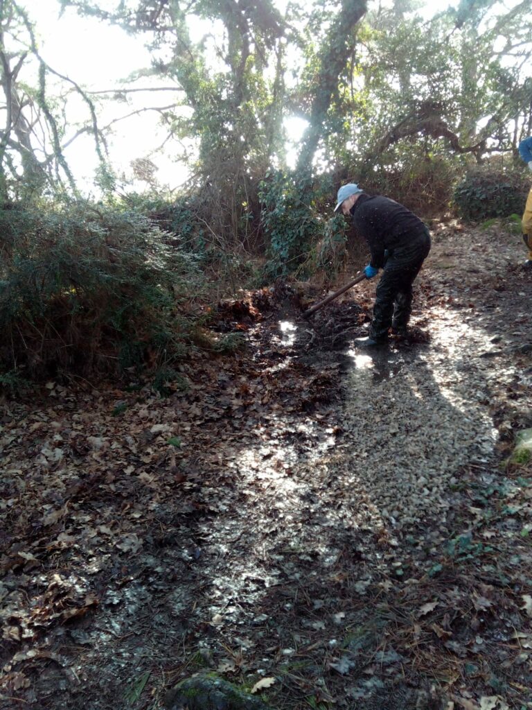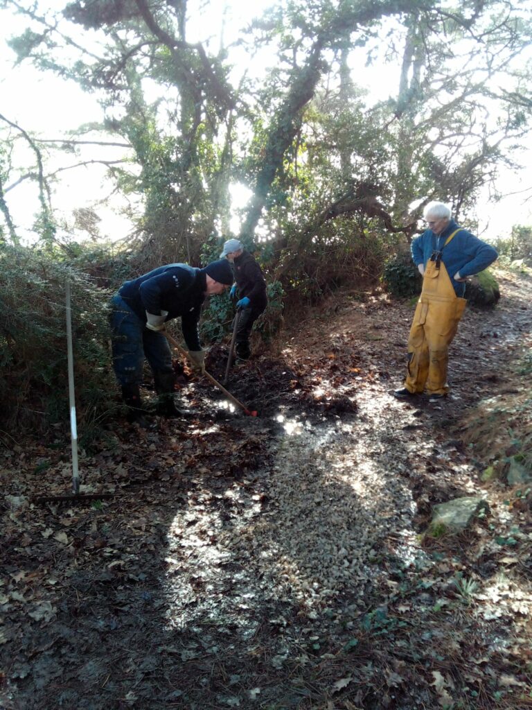 Les brouettes se sont activées pour la dépose de coquilles d’huîtres sur le GR et vers Kermaria.
