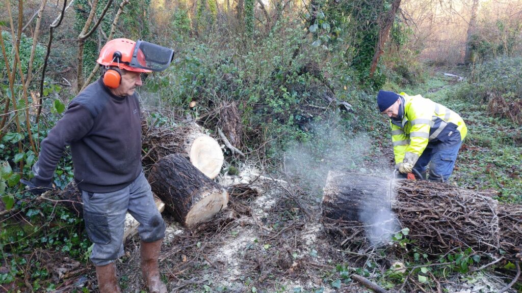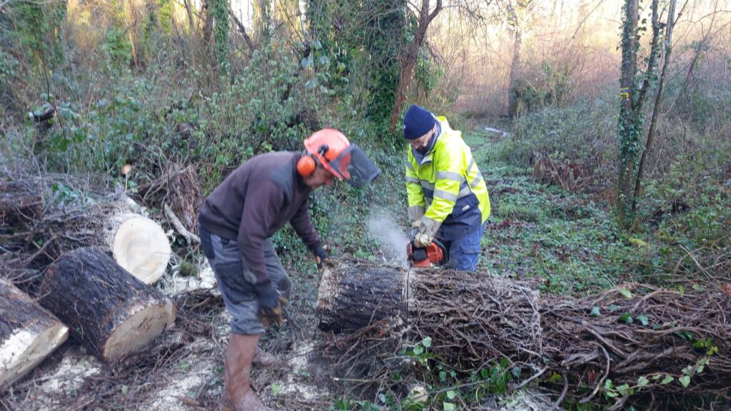 En ce vendredi 16 janvier, Michel, Jean-Claude, Claude, Didier, les deux Bernard, Jean-François et Hervé se sont retrouvés au bas de St Antoine pour un gros travail de bûcheronnage !!