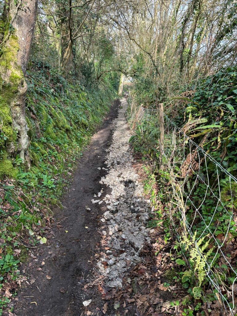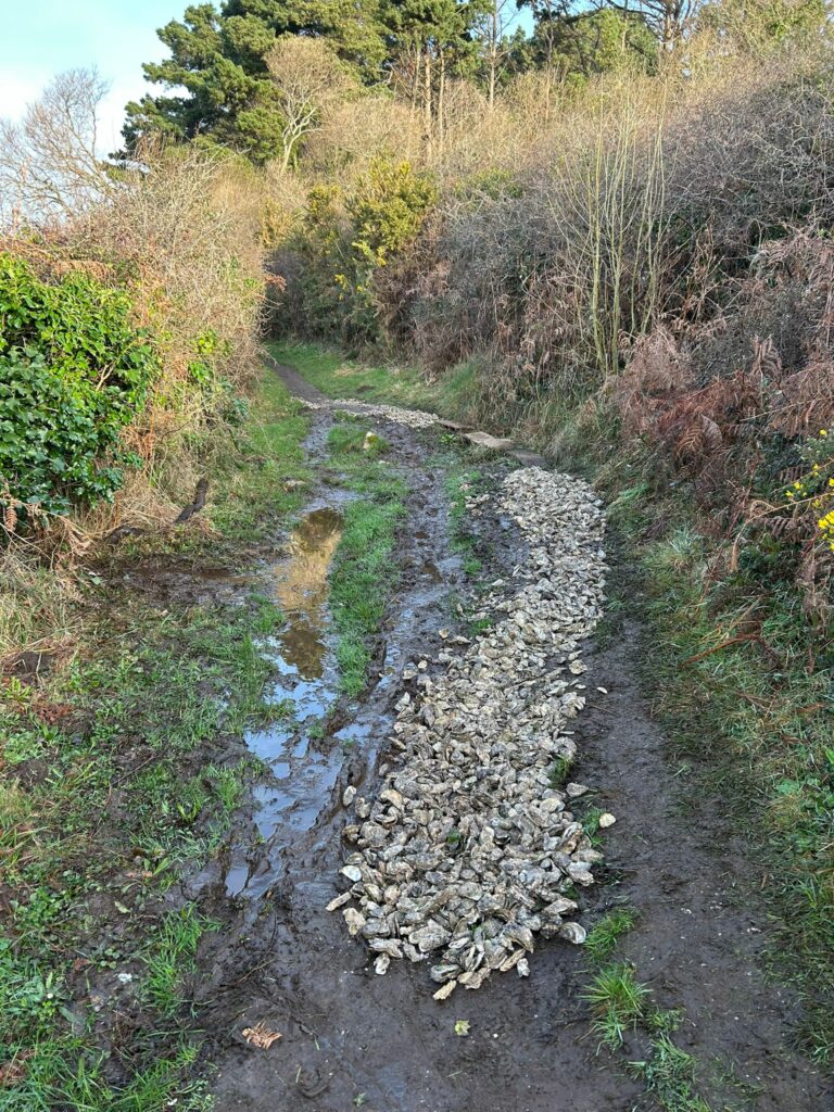 Profitant d’une accalmie, quelques centaines de kilos de coquilles d’huitres ont été étalées sur des portions du GR.