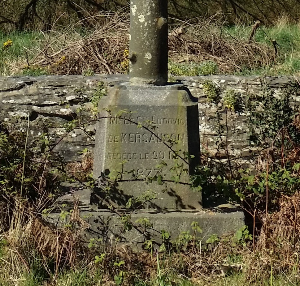 Cette croix rappelle ce tragique événement survenu en ce lieu par cette inscription : « MR LE CTE LUDOVIC / DE KERSAUSON / DÉCÉDÉ LE 29 MAI / 1877″.