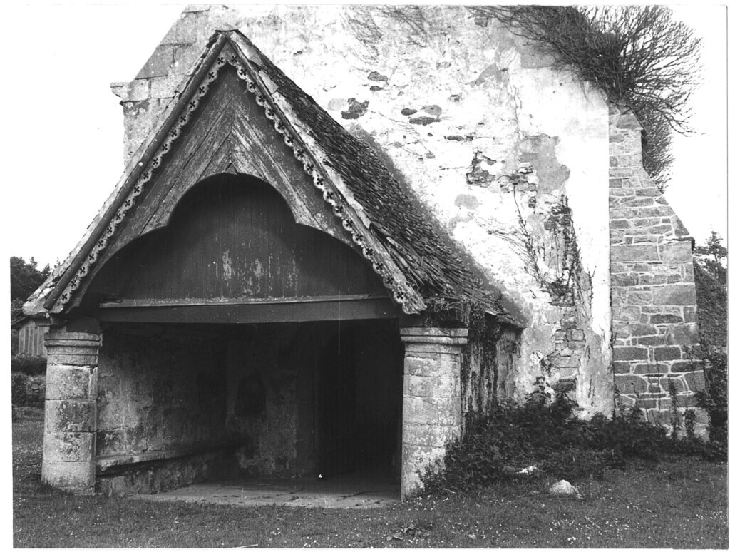 La cloche a été bénite en 1684. Une petite croix en schiste est fixée près de la porte d’entrée.